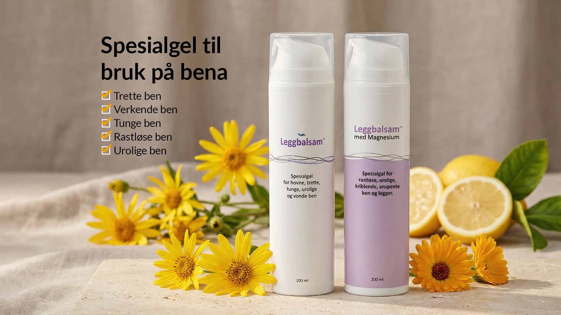 Leggbalsam er et velkjent og godt likt produkt ved verkende og tunge bein, med en behagelig kjølende effekt når bena trenger avlastning.