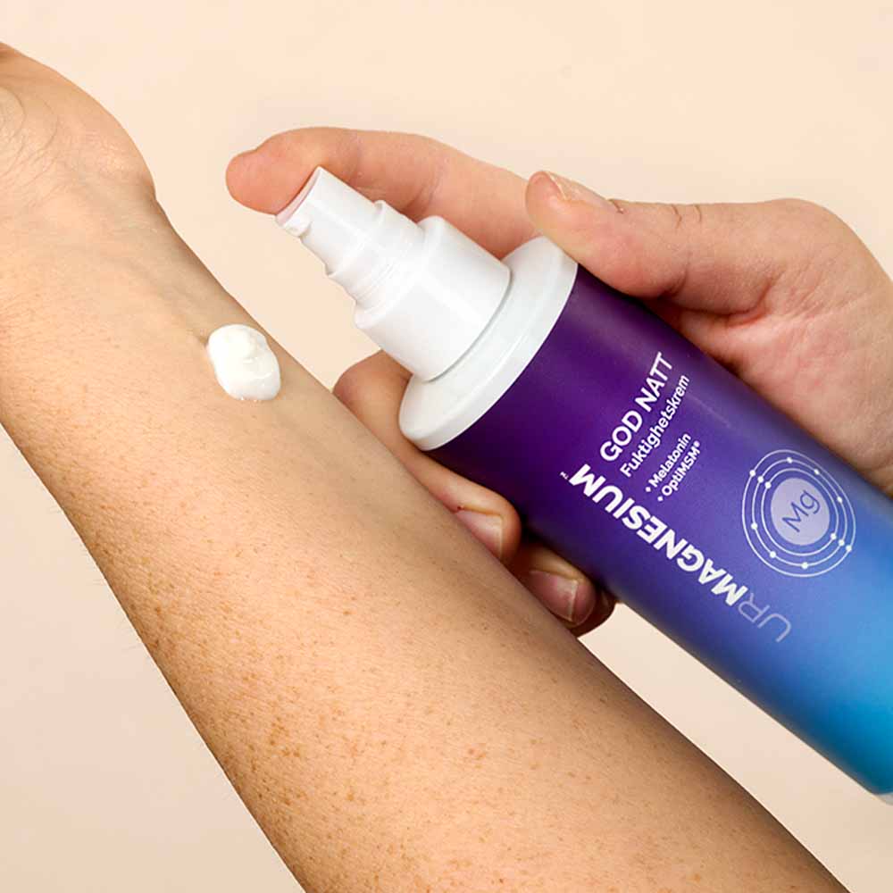 En fuktighetskrem med magnesium fra Zechsteinhavet, OptiMSM® og melatonin. Opptak gjennom huden, belaster ikke magen eller fordøyelsessystemet.